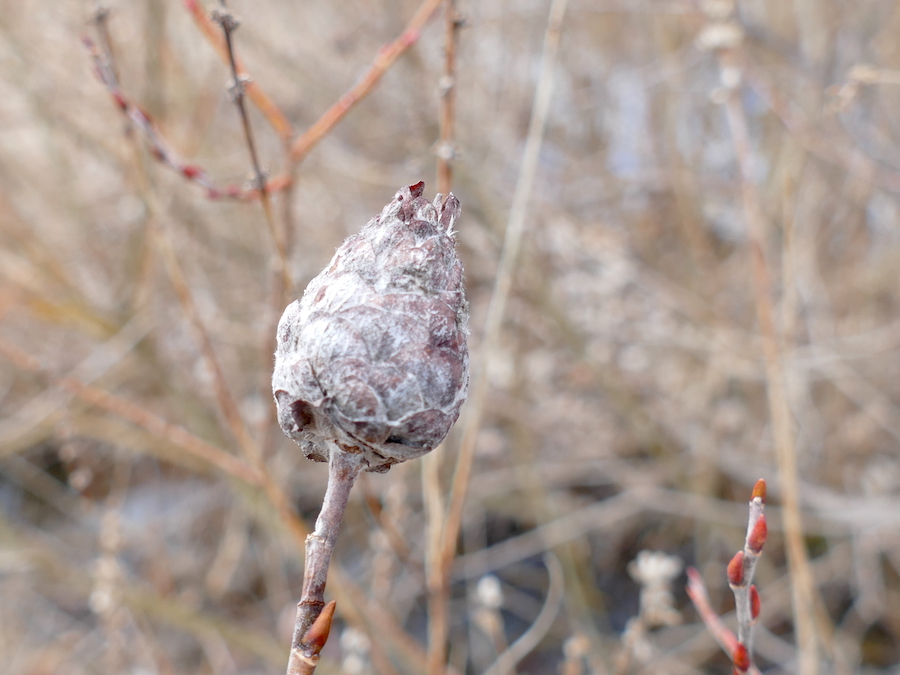 On many of the Missouri willows in the park, you can see pine cone willow galls (above).