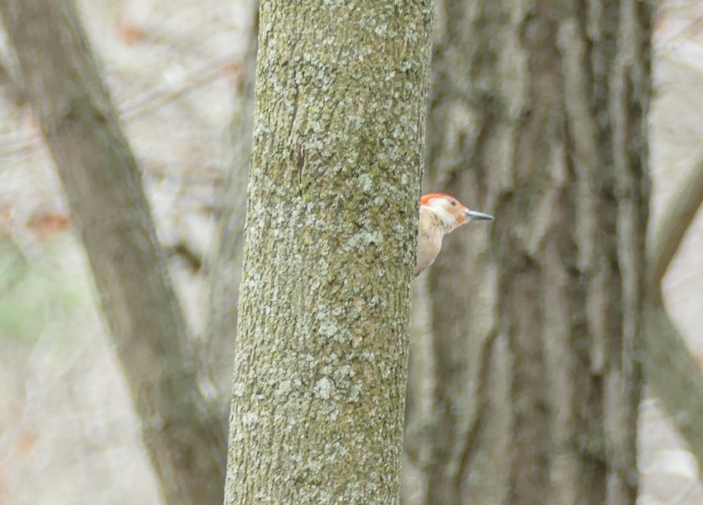 We heard a number of red-bellied woodpeckers, and saw this one on the trail ahead of us.