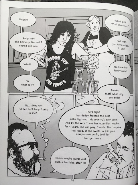 There are no superheros, although playing accordion and concertina is kind of a super-power. It may be a comic, but Squeeze Box Man is aimed at adults and I feel I should offer up the following warning: contains spicy language, alcohol, tobacco and cannabis use, sexual content, as well as plenty of polka and punk.