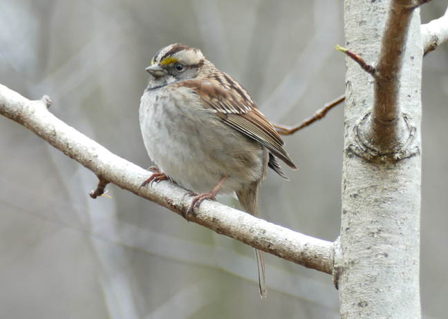 We saw a number of bird species, including the white-throated sparrow, above, and a yellow-rumped warbler, but today was really all about learning some plants.