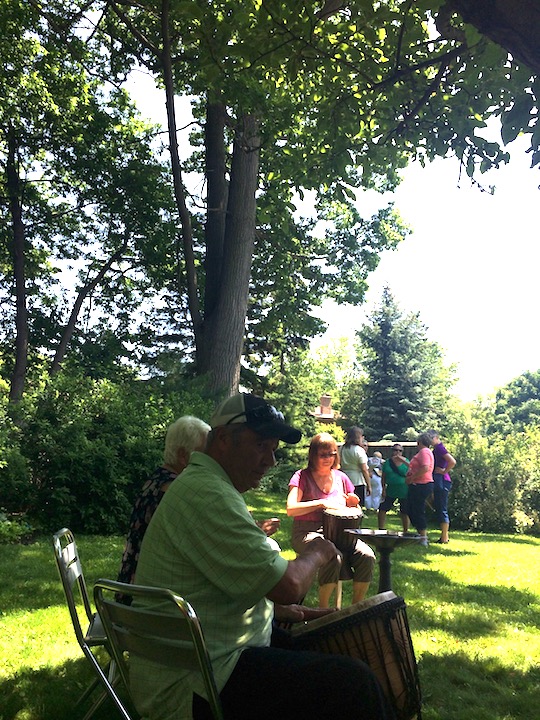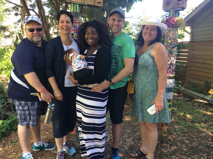 George meets young Arthur Gregoryback gardenGreg, Brenda, Arthur, Steph, Luke & VivVisitorsmore visitorsJack Antler playing Old Time musicCedar waxwings hung out all dayby the bear