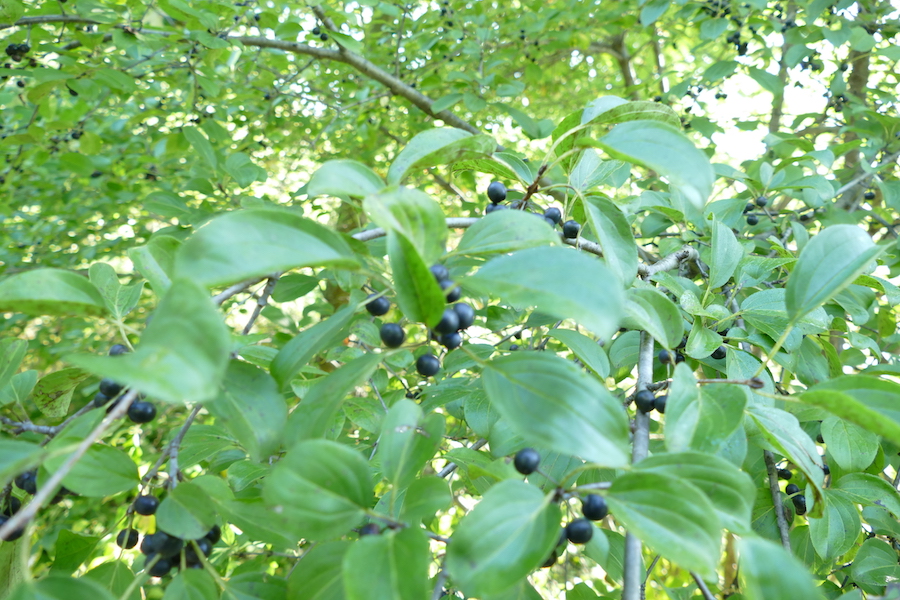 Lots of shrubs are showing off berries right now. One of the more common ones is Buckthorn. In fact, this shrub is considered invasive. The berries don’t look all that much different than the Serviceberries we enjoyed earlier in the summer, but you don’t want to eat Buckthorn berries. The Latin name of the plant is Rhamnus cathartica, and if you eat the berries, you will have an unpleasant and in fact cathartic experience.