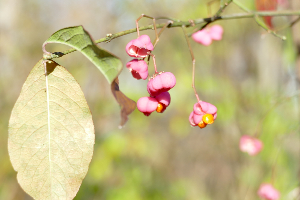 Also called European Euonymus or burning bush. The Winged Euonymus is also sometimes called burning bush to add to my confusion. This is from Humber Bay.