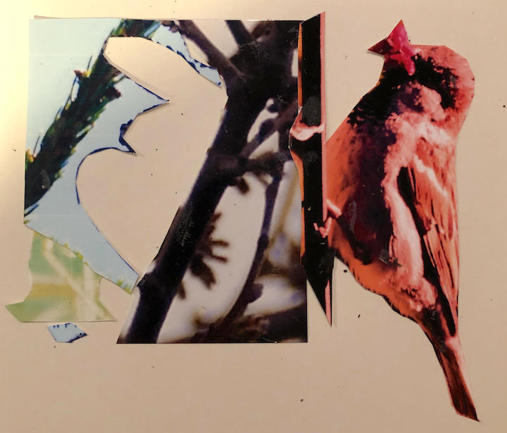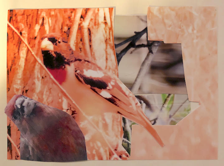 Let’s just say that it occurred to me that at some point I may have a box of scraps accumulated with few if any birdy bits left. What then? Is it over? Do I need to cut up more photos? Do I want to simply work with the box of scraps, the glue stick and scissors and allow myself to leave the birds in my dust? I really don’t know, except to say that I’ve always had a restless imagination and in my work as a painter I’ve typically worked in groups of paintings. When I stop, I find myself going back to the most basic questions, like how do I make any kind of image I can live with. Sometimes I’ll look at a group of paintings when I’ve exhibited them, and while I recognize ideas that permeate my paintings and have for a long time, I wonder, how did I make these things up? How did I get to this particular place? Is it still possible for me to make more paintings (a curious thought, since it seems that like a junker with his dope, I would find it difficult to stop if I wanted to).