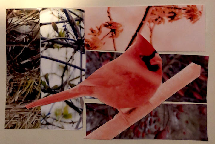 There are starting points and there are starting points. The nature walks are a starting point. My desire to learn more about the natural world around me is a starting point. The lists I make are starting points. The photos I snap on the walks are starting points. The arbitrary elements I create by cutting up photos are starting points. The collages are starting points. On and on.