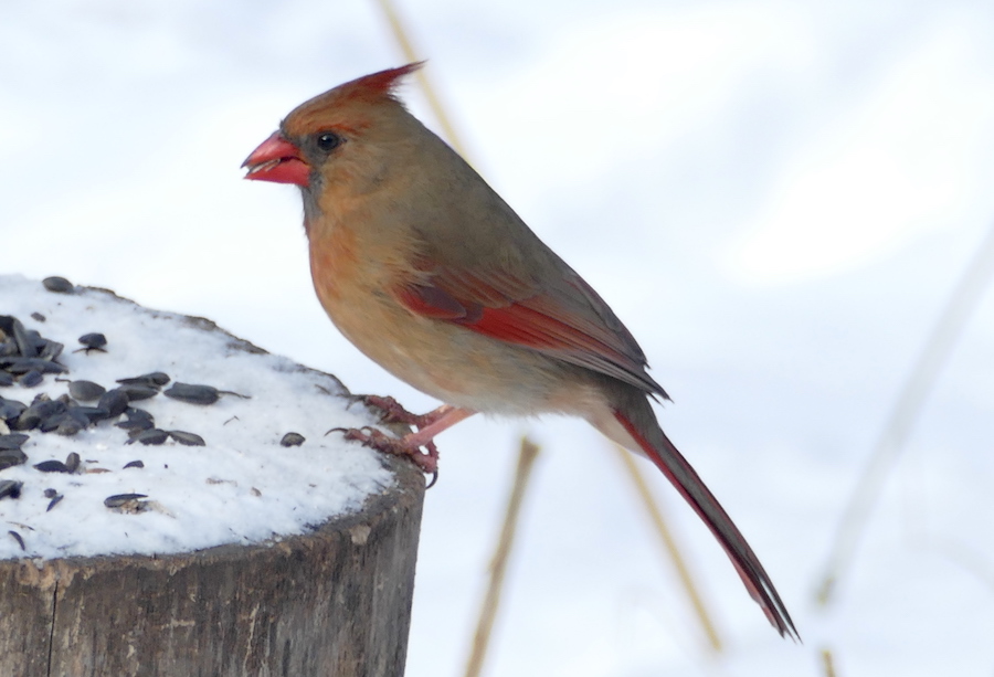 Other birds we saw include white-throated and house sparrows, cardinals, robins, brown creepers, a brown thrasher, downy, red-headed and red-bellied woodpeckers, starlings, mallards, golden-eyes, common merganzers, and house finches.