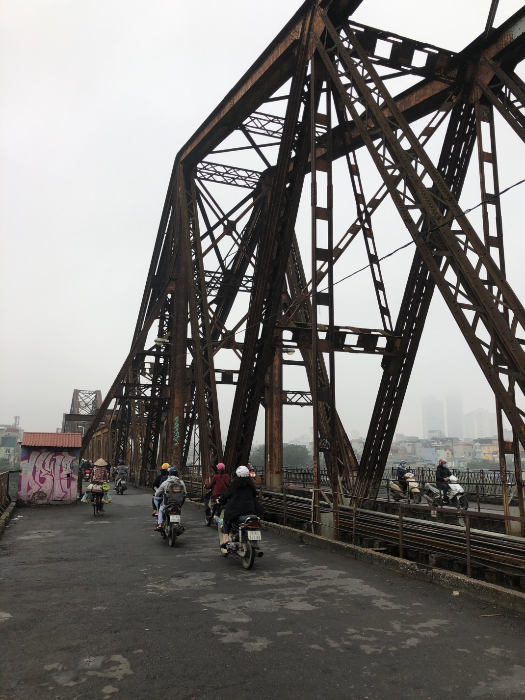 The Long Bien Bridge is a turn of the (20th) century engineering marvel which withstood considerable bombing during the American war. I read on the Rusty Compass blog that there were plans to demolish the bridge in 2014, which were abandoned after an outcry from Hanoians.