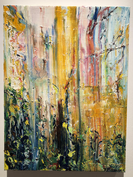 Tim has produced another high-energy, high-chroma set of paintings. From the gallery website: “My current exhibition consists of abstract paintings inspired by the city, gardens and landscape. I have experimented with thickness and viscosity by utilizing brushes, palette knives, scraping and squeezed from the tube techniques to create visually dense surfaces. The balanced contrasts, atmospheres and moods are energized by my explorations of colour, shapes, lines and a vigorous paint application.”