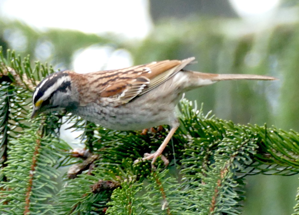 White throated sparrows pass through Toronto each spring then head north. Right now we have some hanging out in one of the big spruce trees out back.
