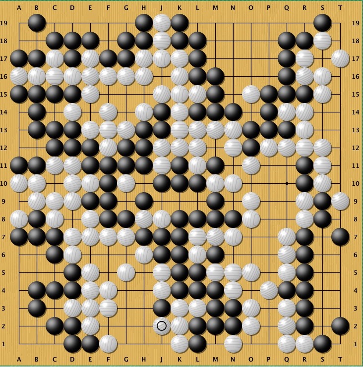 I won 3/5 games. One was a blowout and another was by a slim margin of 1.5. It seems giving Vox 2 stones and taking 6.5 komi puts us very close to even. It’s true I’ve been winning more games, but each session I’ve needed the komi to win one or more of the games.
