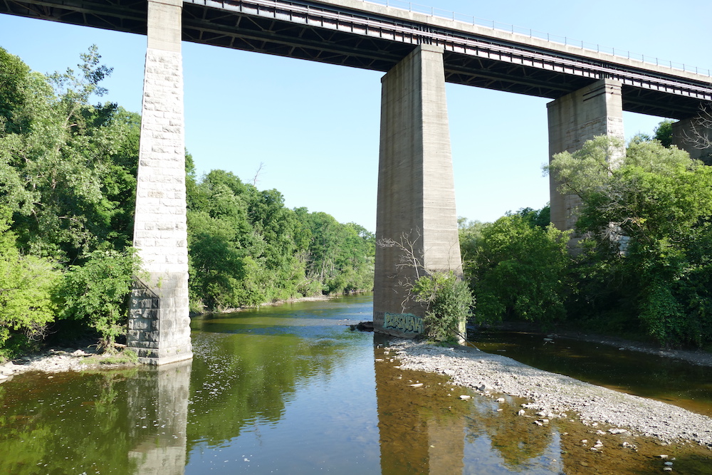 This morning I decided to drive over there and walk the loop from the parking lot, through the woods to the rail trestle then back along the river, just to make sure I can handle this walk OK.