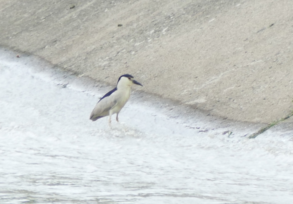 Hobie spotted a black-crowned night heron fishing in the channelized creek which flows into the river from the golf course on the other side of the Humber. It’s a spot that often attracts herons and other birds.