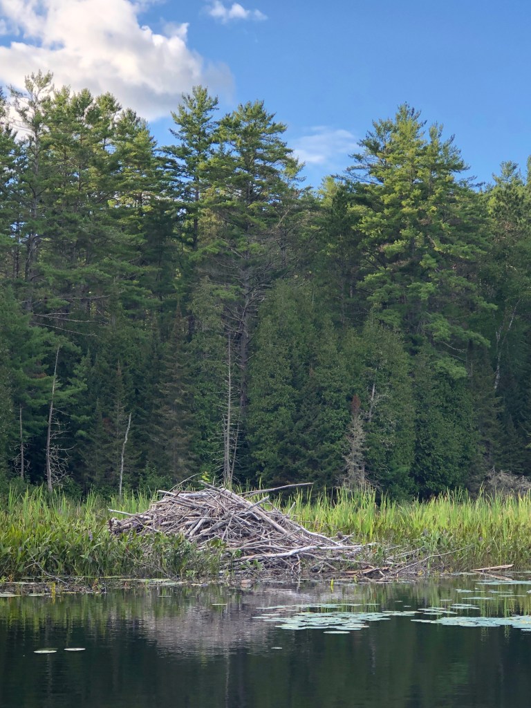 I stayed in Samuel de Champlain Park, east of North Bay. It’s located where the Amable du Fond River flows into Moore Lake, which flows into the Mattawa River. My musical partner Ted loaned me a beautiful solo canoe, so I could paddle around the lake and do a little (mostly unsuccessful) fishing.