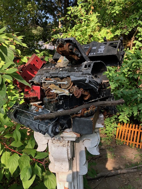 Gradually the idea of creating a train wreck sculpture for the backyard took hold, and I’ve finally done it.