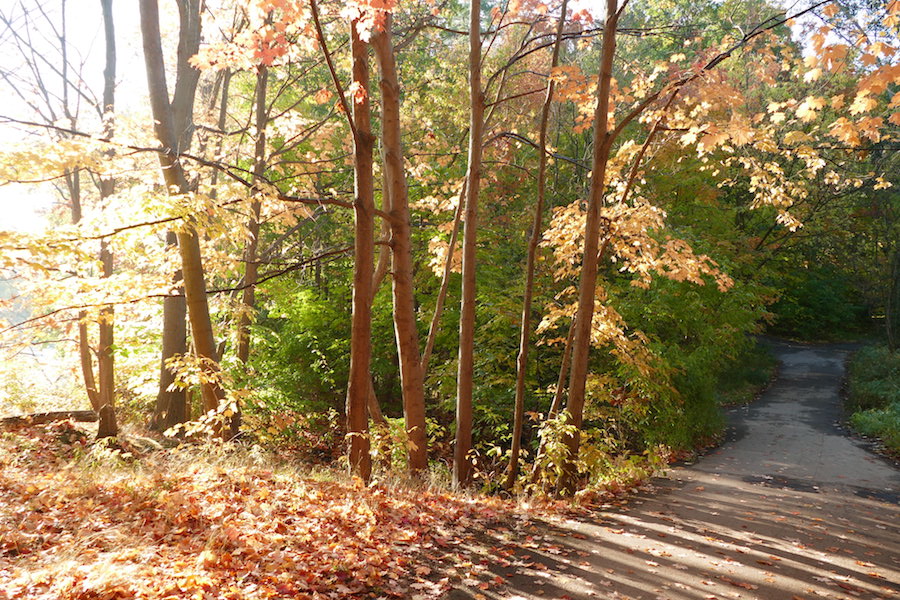 It’s a crisp clear morning, perfect for a walk along the Humber River in Toronto. The morning light accentuates the fall colours.