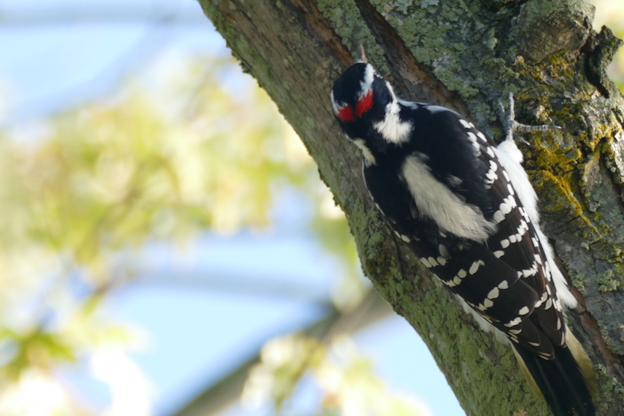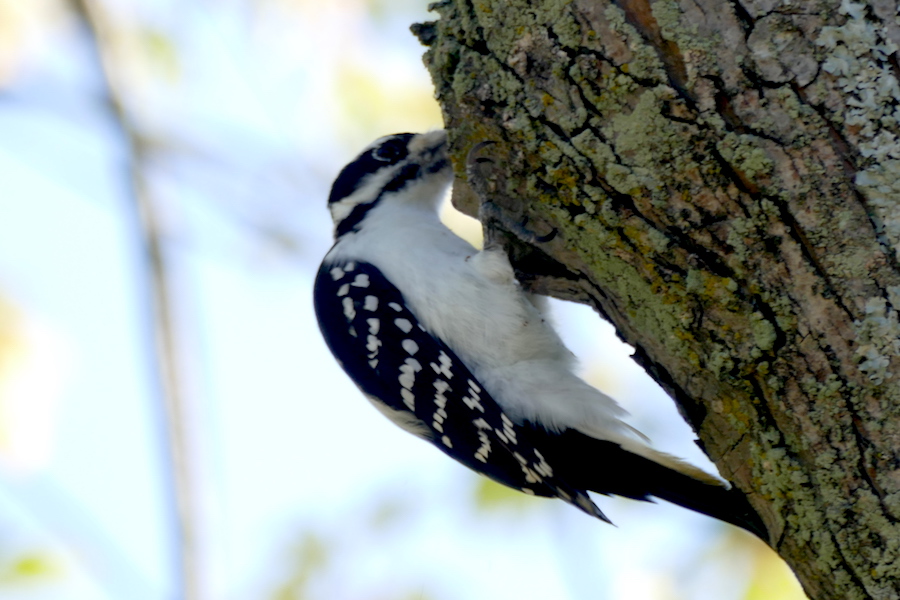 I often see woodpeckers along the trail here and today was no exception. The hairy woodpecker banging away in a nearby tree shows no fear of me.