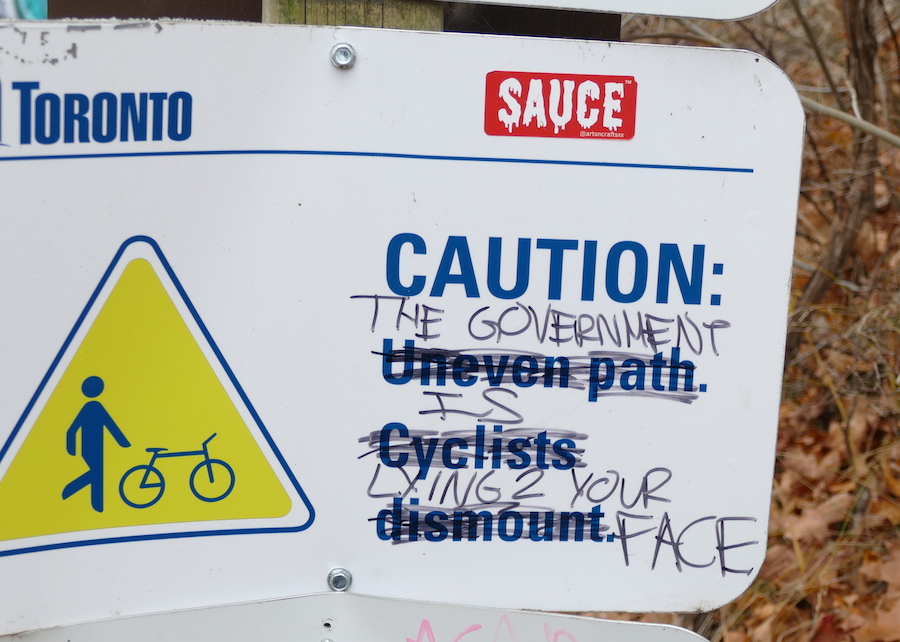 Well, that’s some interesting signage. Next it’ll be beavers leaving their initials.
