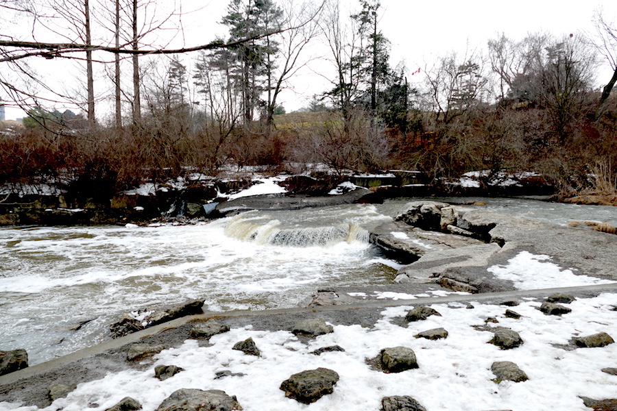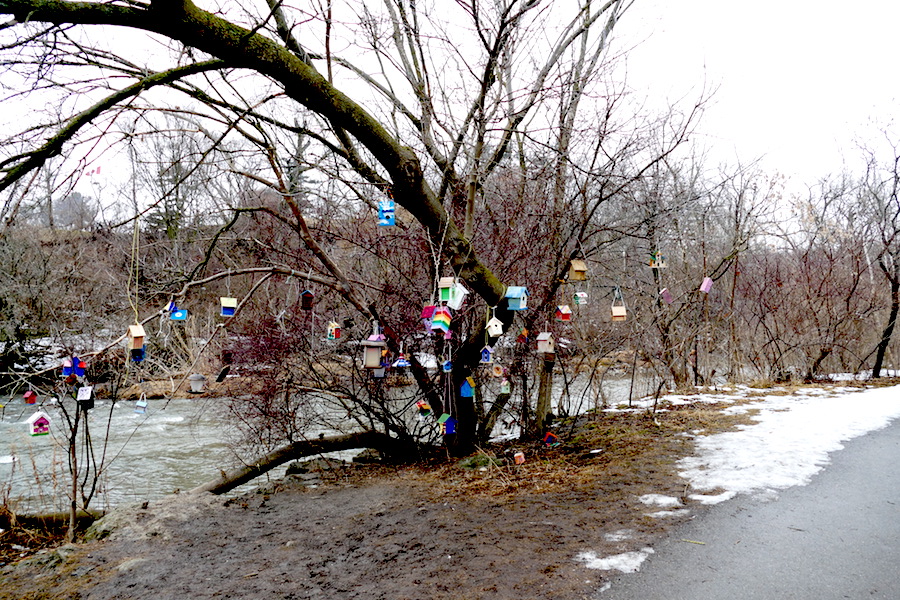 We walked north along the creek. I rarely walk up this way. For a walk in this area, my usual preference is to go through the fields in the Arsenal Lands then back through the forest in Marie Curtis Park. Morning was overcast, and though the temperature was moderate, there was a dampness in the air which made it feel perhaps colder than it actually was.