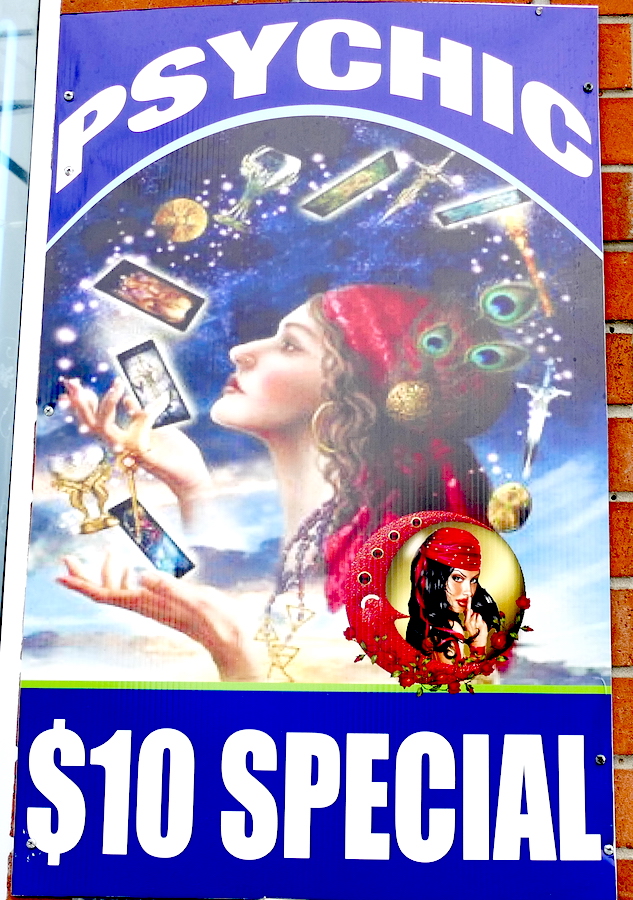 We walked south, past the ten dollar psychic…..