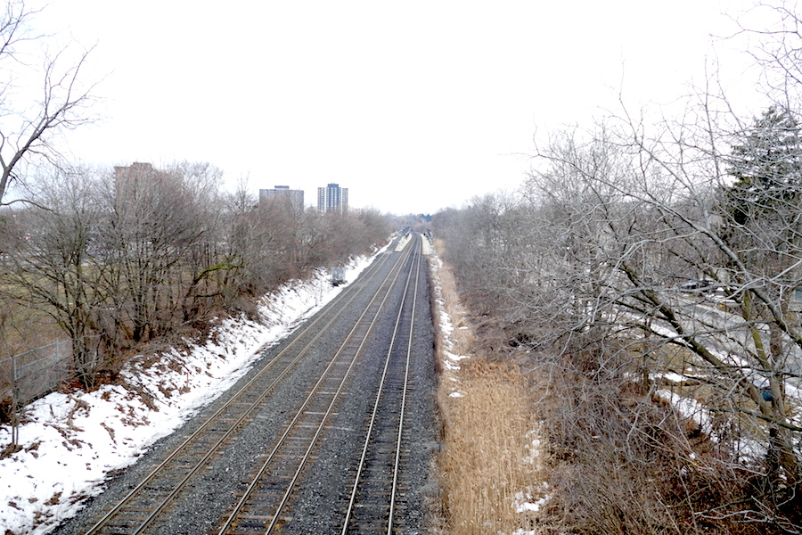 We stopped on the rail bridge for a look down the tracks. The Go Train Lake Shore line runs through here. Browns Line curves just south of here before spilling out onto Lake Shore. Walking west, we passed the Long Branch Loop, the Go Station and the Legion before getting back to Ted’s place.
