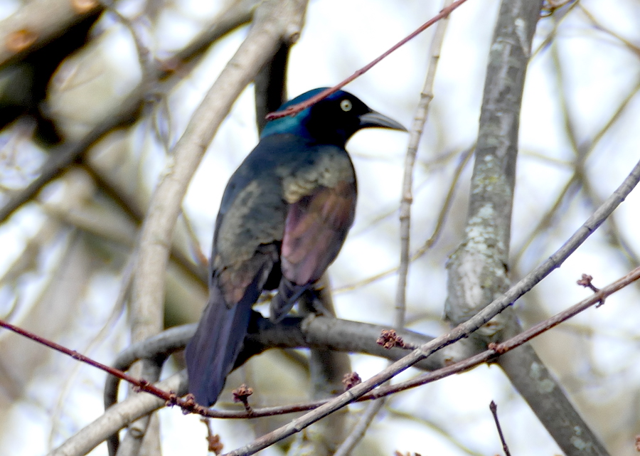 One of the delights as winter wanes is the return of so many different birds. Several days ago the red-winged blackbird males arrived, and on their heels were the neighbourhood bullies, the grackles. They come to the feeders in groups and they monopolize them, not giving the house sparrows and others much opportunity to get their share of seeds.