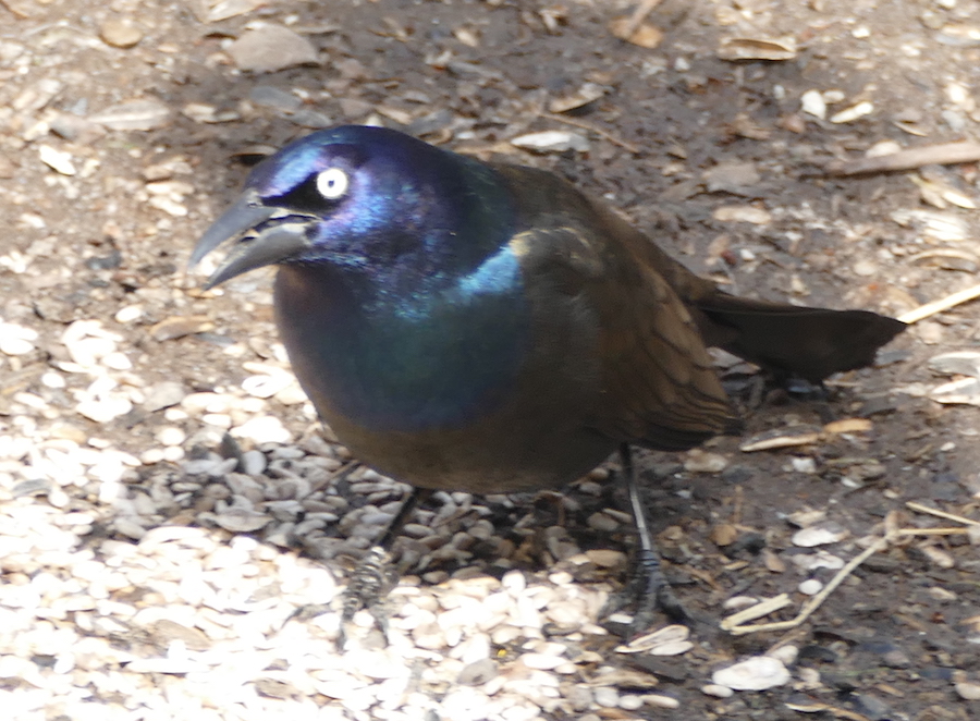 On a dull day, they look like big all-black birds, but when the sun is out, their iridescent blue heads and bronze backs are gorgeous.