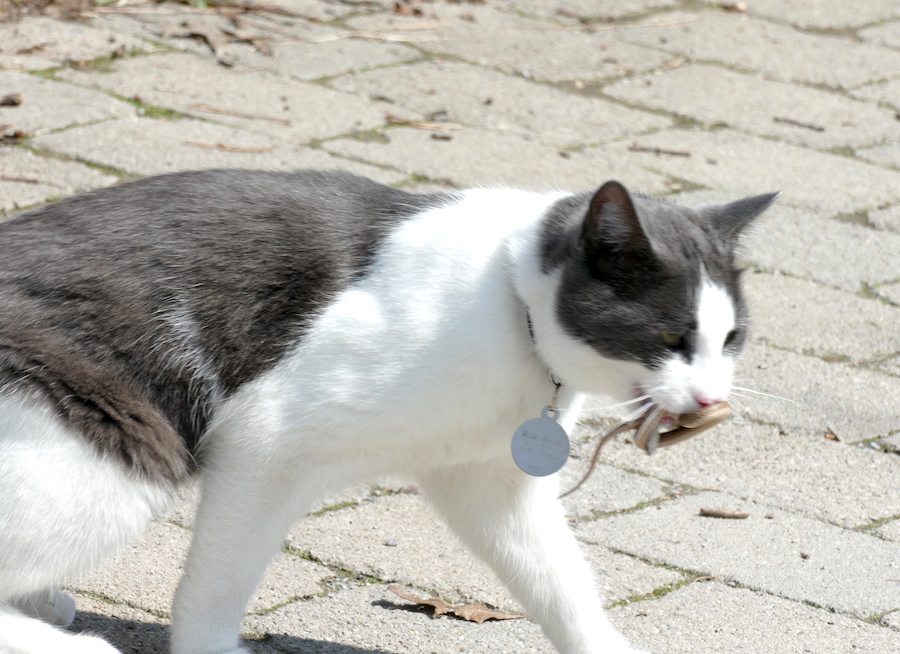 There is a grey and white cat who I’ve seen a few times at the park. He’s got quite the playground. Last time I saw this cat, it was climbing around a tree near the pond, showing off for passers-by. Today it was snake-hunting.