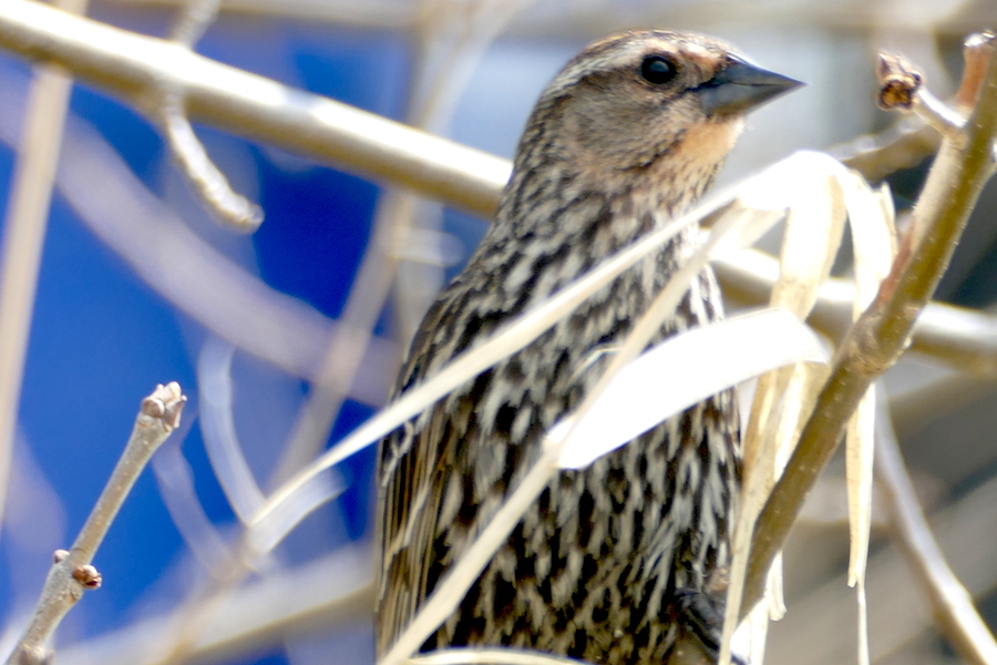 Each spring, the male red-winged blackbirds return to our area weeks ahead of the females, who have now also arrived.