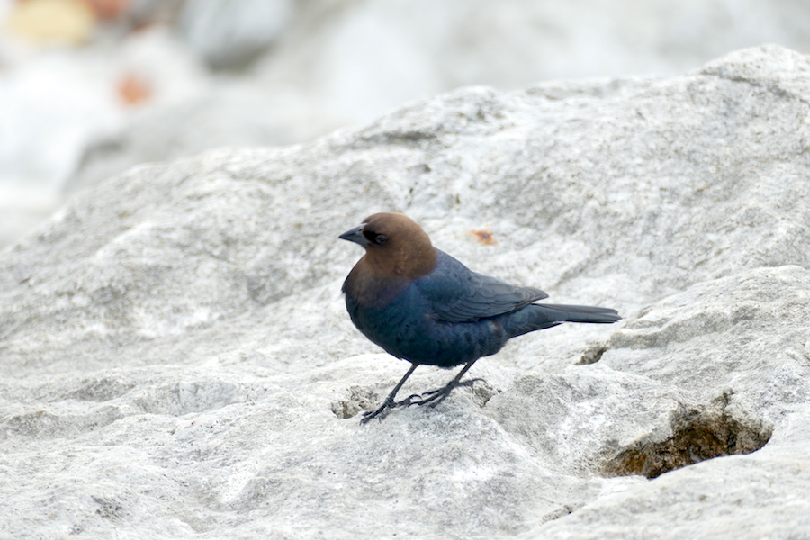 I watched some brown-headed cowbirds walk about on the rocks for a while. It was hard to tell what they were trying to accomplish, but whatever it was, they were busy at it.