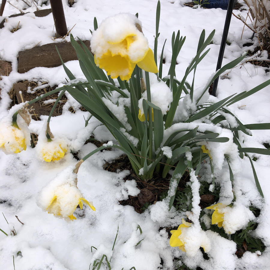 Oh, poor things! We’re meant to get a cold blast here in a few hours, so I suppose you sent it to us. But my daffs are a week or so ahead of yours, so they’ve mostly already checked out.