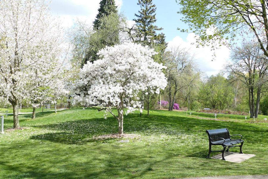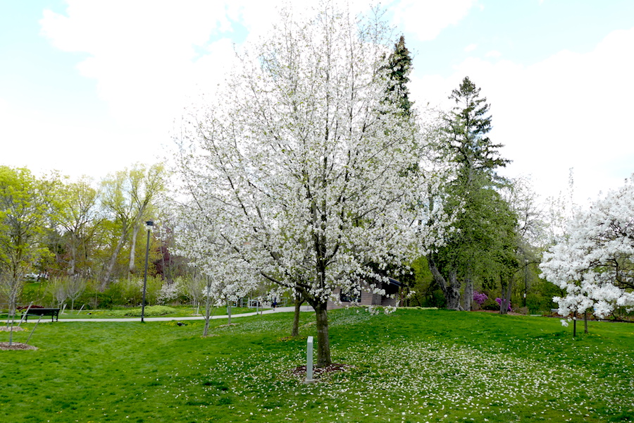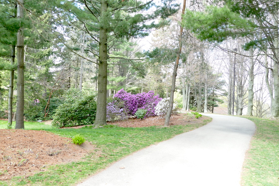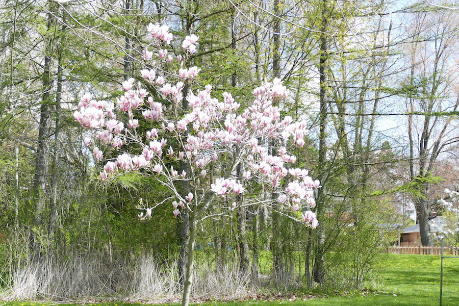 It’s a lovely property, with a small creek, a variety of gardens, a swampy bit, a field, access to Lake Ontario, and a good variety of trees, many currently in blossom.