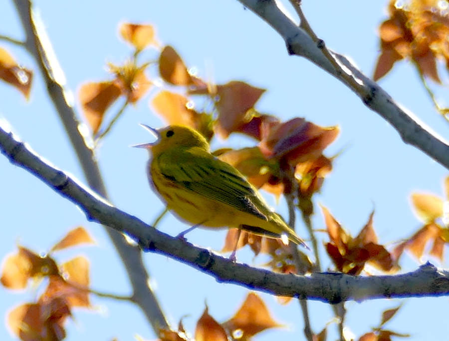 I drove over to Humber Bay East this morning for a walk. This waterfront park is a great place to see birds, and at the foot of Park Lawn, it’s just a short drive from where we live. I expected to see some Baltimore Orioles there today since I’ve been seeing them around my neighbourhood each morning when I walk the dogs, but I didn’t see any. I did see quite a few birds though, including yellow warblers, yellow-rumped warblers, red-necked grebes, tree swallows, kinglets, cedar waxwings, cormorants, cardinals, grackles, red-winged blackbirds, song sparrows, house sparrows, terns, gulls, Canada geese, and more.