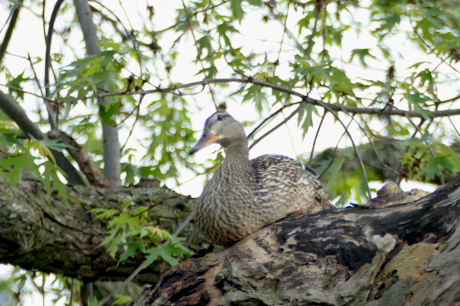 These photos have been sitting in my camera for a few days. In fact I forget all about the duck in the silver maple next door. She sat there for hours then flew off. I had been sitting on the front porch practicing the fiddle, but failed to notice a duck up in the tree until neighbours with cameras showed up to take photos.
