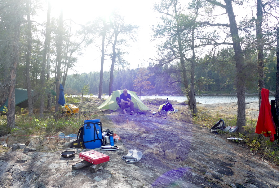 We had a bug-free trip, which was a real treat, and just 2 nights and a morning of rain. The trip alternated between river and lake stretches, including parts of Smirch Lake, Dibble Lake and big White Otter Lake. Fishing was great for bass, including some really big ones. Here’s a selection of snapshots I took along the way.