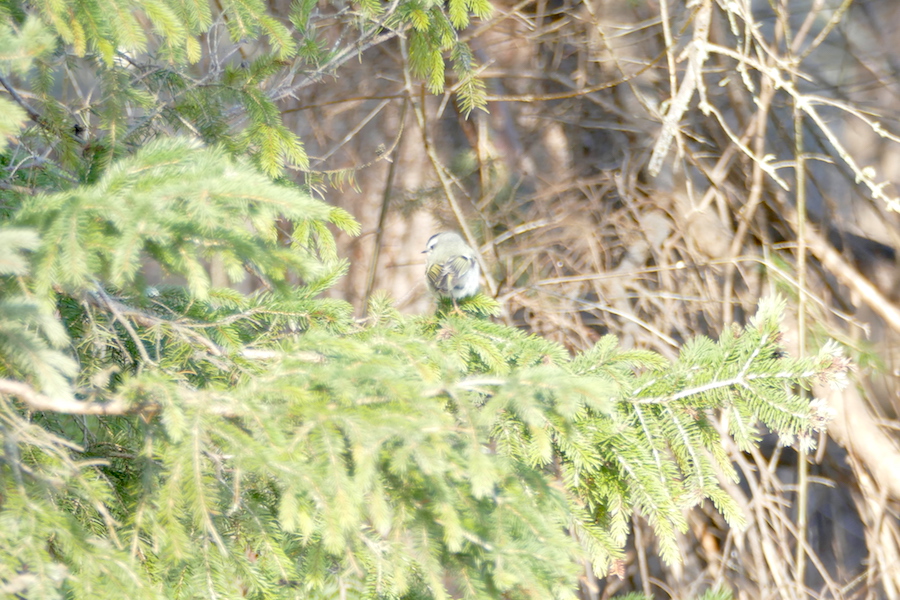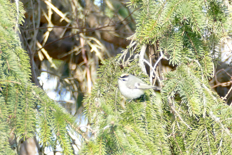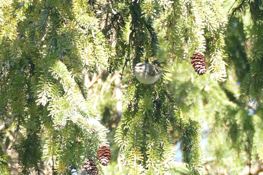 We found a spruce hosting several golden-crowned kinglets. These tiny birds are challenging to photograph both because they can quickly get lost in branches and also because they seem to never stop moving.