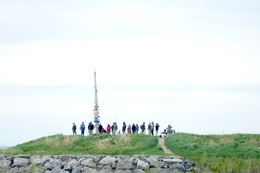 One of the people involved with the Whimbrel Watch gave us a short talk about these birds and their migration patterns. Each evening they are in touch with other Whibrel watchers down in Virginia and South Carolina. They are given a number representing the number of birds that took off heading north, and each day they hope to match that number of birds flying through. We saw some whimbrels as tiny dots near the horizon. Closer, we saw a group of sanderlings and dunlins fly over. One day this last week they counted over 700 birds in one flock.