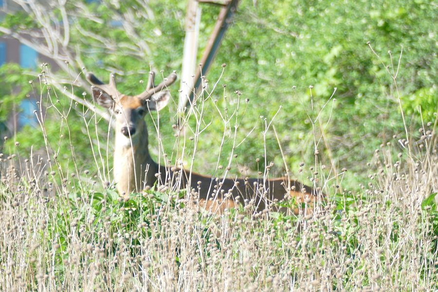 Today marked the last in the current series of nature walks from the Toronto District School Board, and led by naturalist Miles Hearn. We met up at 8:00 this morning at Thomson Memorial Park, which is at Brimley Rd and Lawrence Ave E in Scarborough. I had no idea this gem of a woodland park existed. Thomson Park is well used, but still there is room for deer. The one I photographed stood still and watched our group for some time. I thought I briefly saw a second deer, but I only photographed this one.