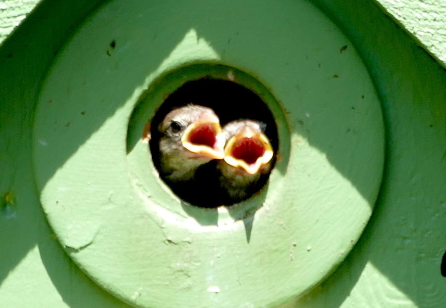 June 22, 2022 comment 0 Dinner Service I noticed a couple baby house sparrows in one of the bird houses out back. They were sticking their heads out, jockeying for position, waiting for lunch. Share this:Share Click to share on X (Opens in new window) X Click to share on Facebook (Opens in new window) Facebook Click to email a link to a friend (Opens in new window) Email Click to print (Opens in new window) Print Like Loading... Related