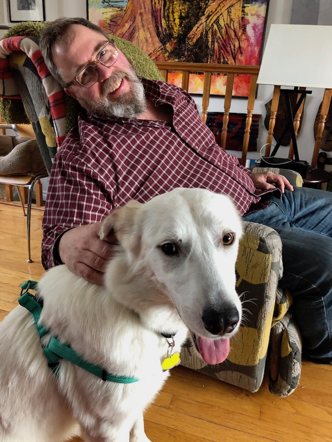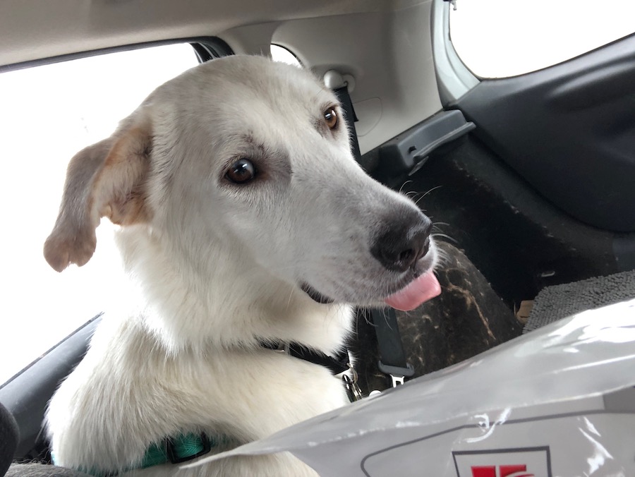 She was given the name Teya at some point along the way. We may give her a new name to go along with her new digs but we’ll decide that as we get to know her. She is apparently around a year old and they think she is a Pyrenees/Lab mix. She weighs 68 pounds and is perhaps a just a little underweight.