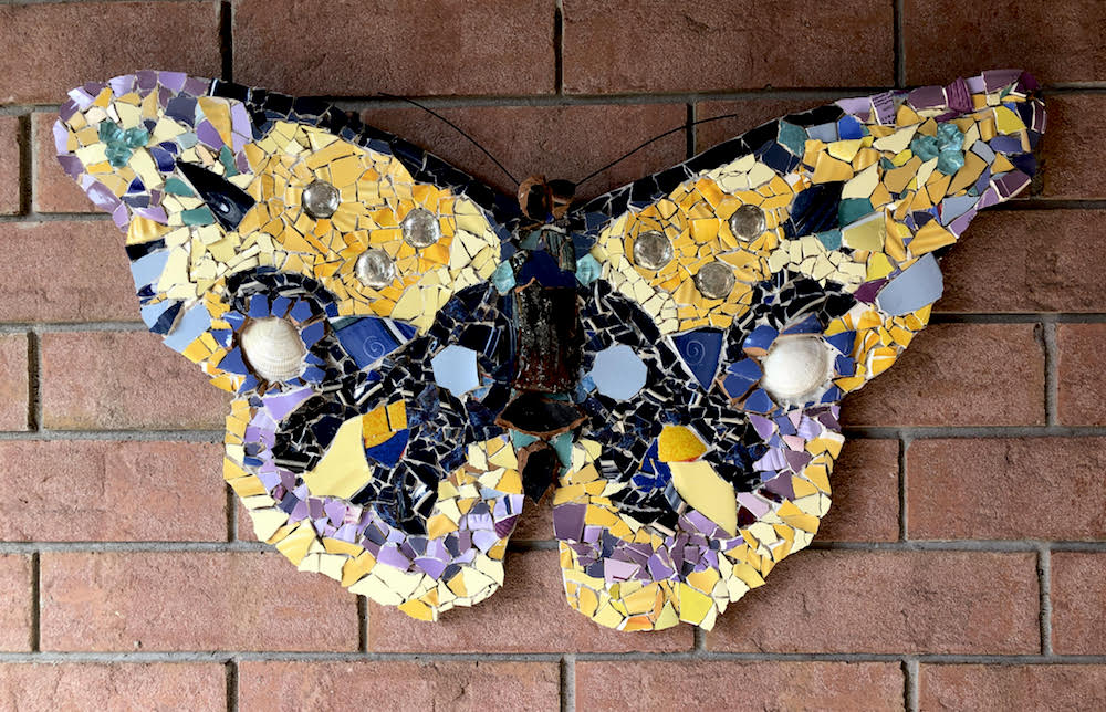 Today I installed a new mosaic for a longtime friend. Sheila and I worked on this one together. It’s called Lisa’s Butterfly. You can see photos of many of our mosaics on the Long Branch Mosaics website.