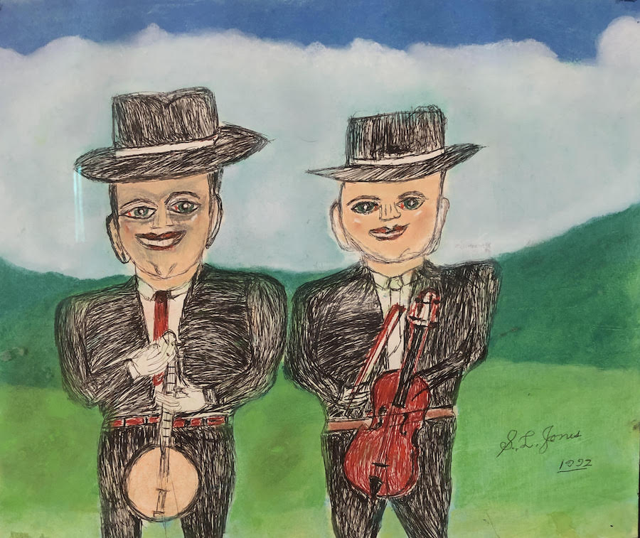“A person has to have some work to do, so I carve some and play the fiddle.” I searched YouTube in hopes of finding recordings Mr. Jones may have made playing his fiddle, but no joy there. I read that he also taught himself banjo. Jones started drawing, painting, and soon after also carving, in 1967 after retiring from a job as a carpenter/foreman for the Chesapeake and Ohio Railway.