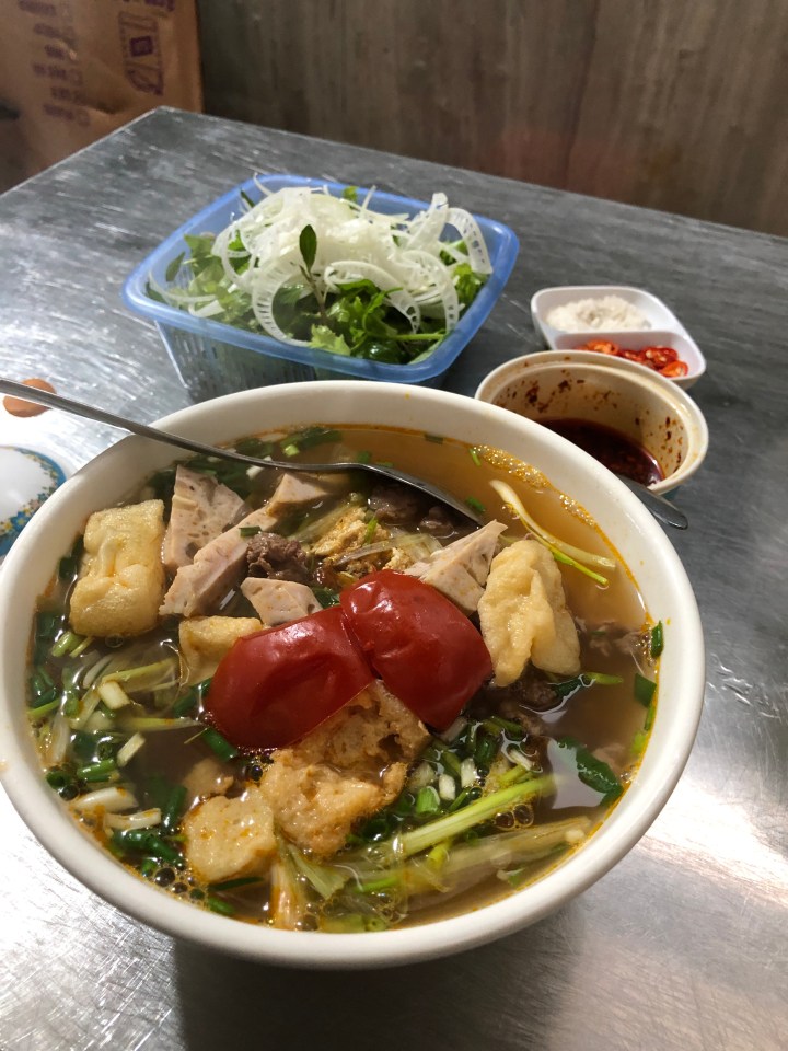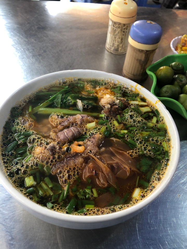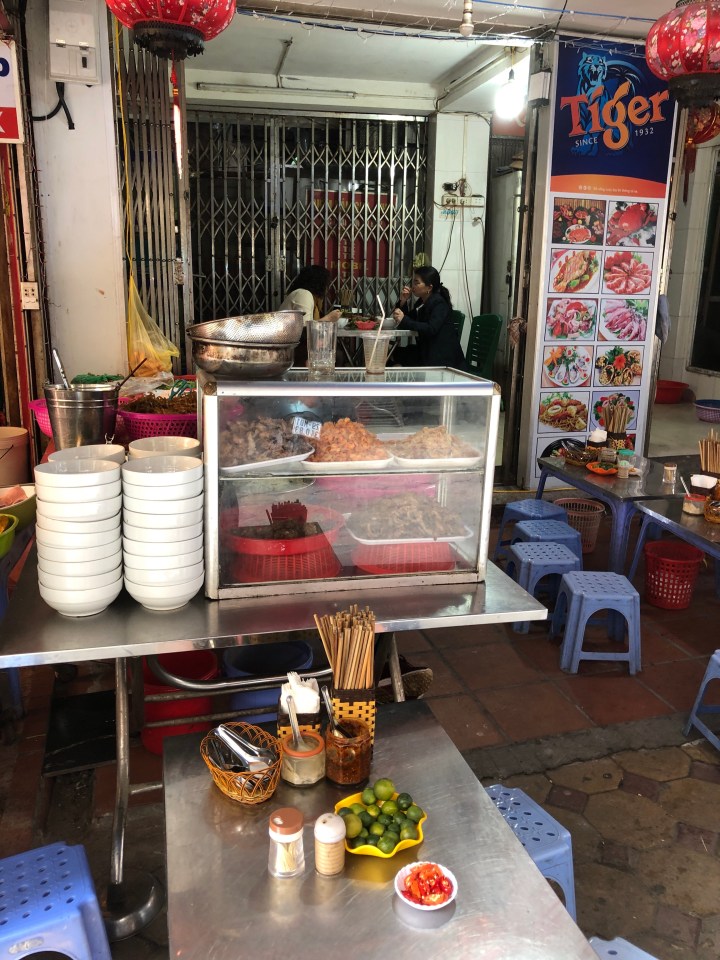 This little street food place appeared to be a 2 woman operation, one assembling bowls of soup and the other serving and collecting money.
