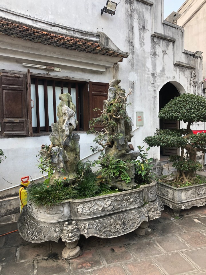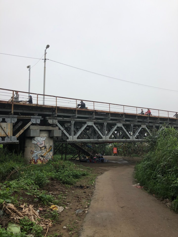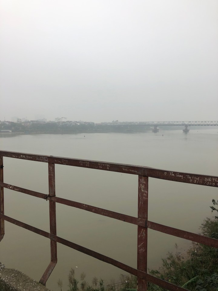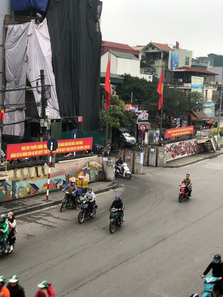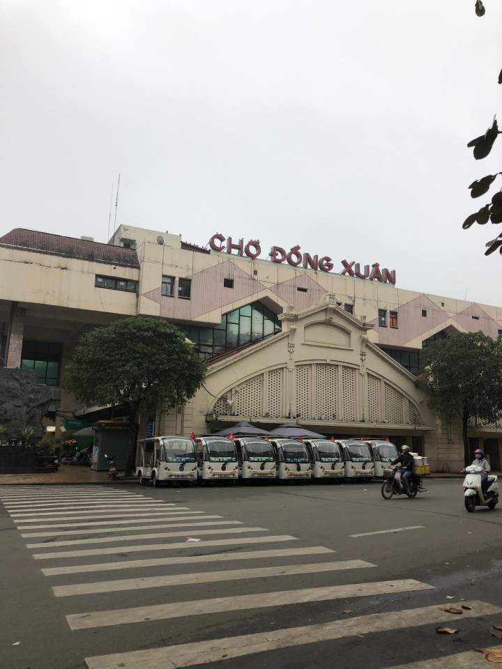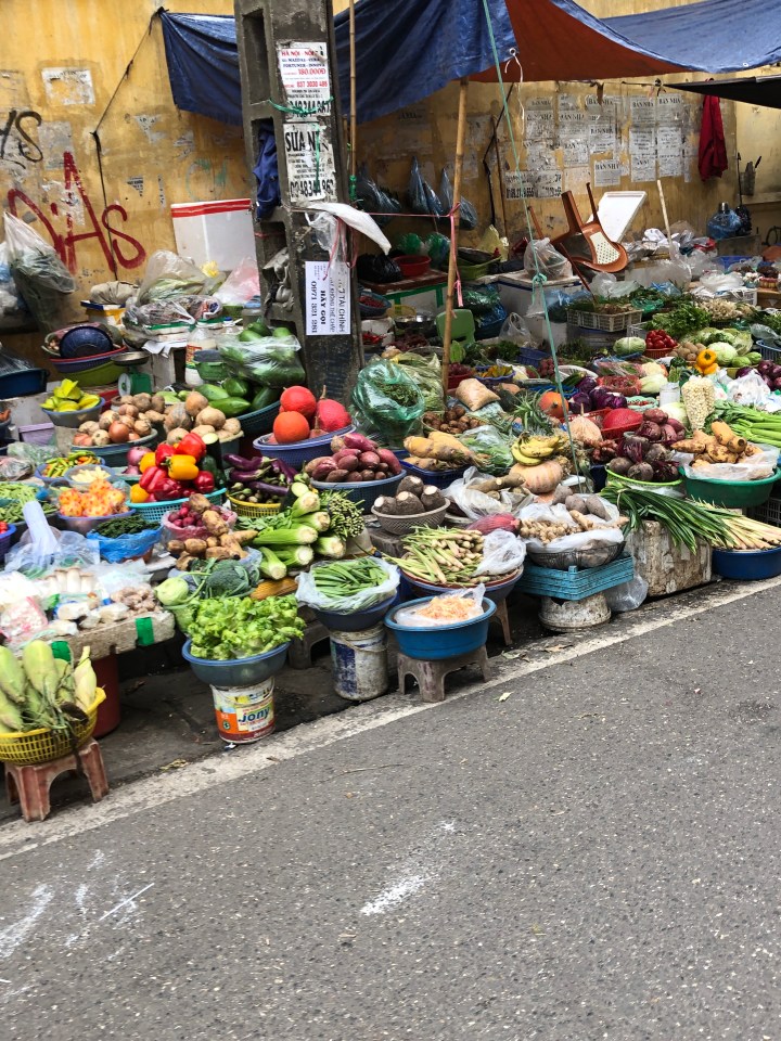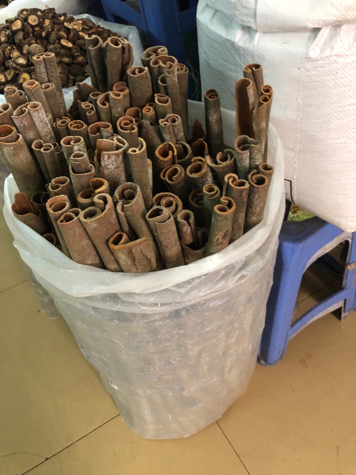I tried asking the name of the soup, but I was unable to get across what I wanted to know. Back at my hotel, I showed the staff a picture of the soup and told them where I got it and they gave me the name. The particular thick noodles are called banh da. When I looked them up I found out they are a specialty of Hai Phong. The unusual colour is attained from a certain red fruit.