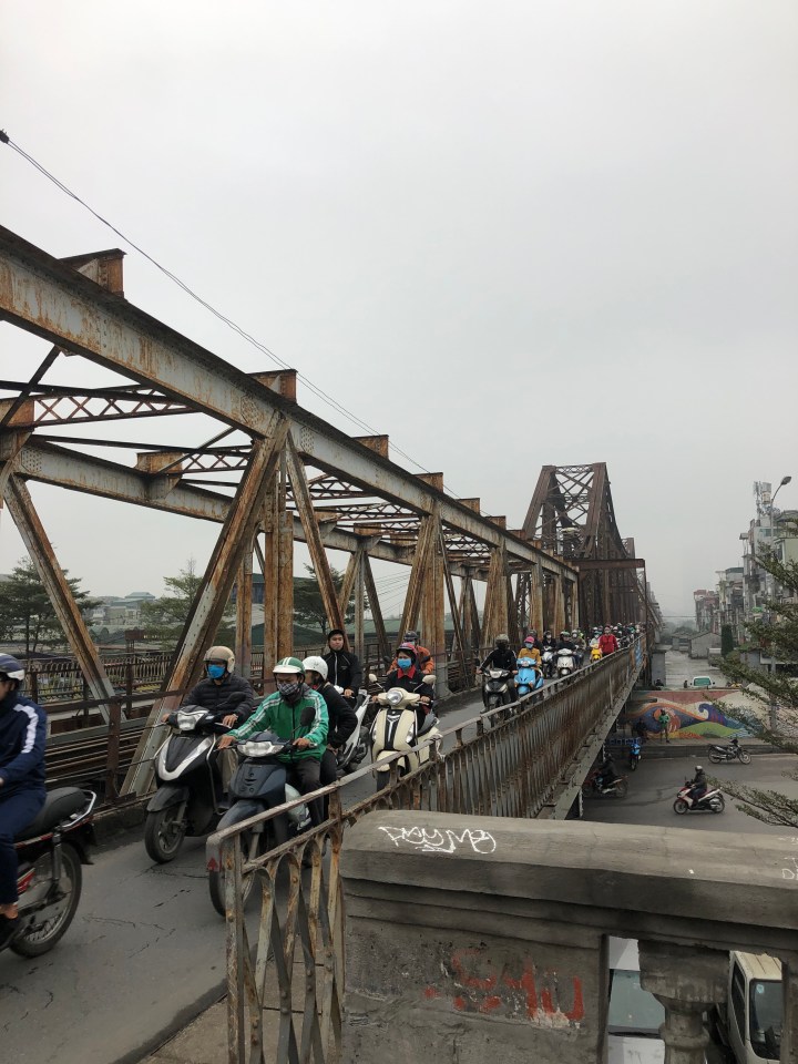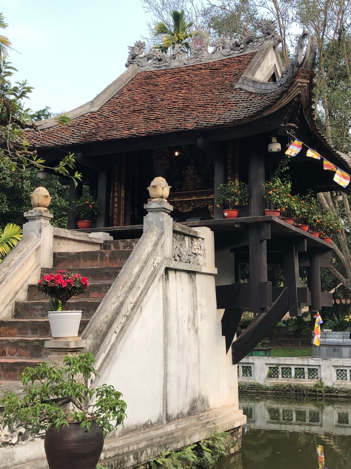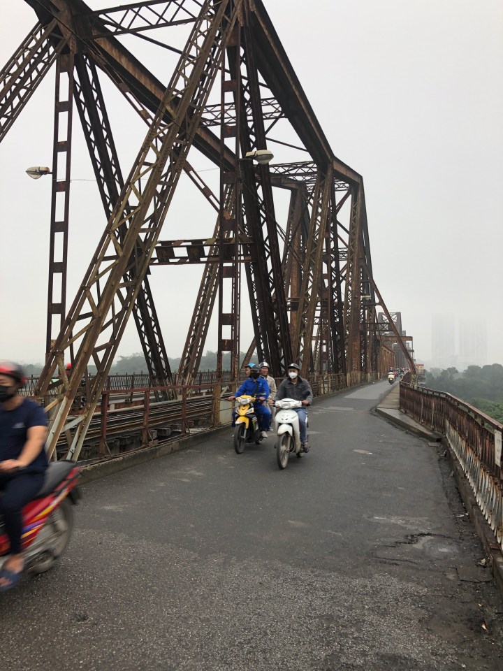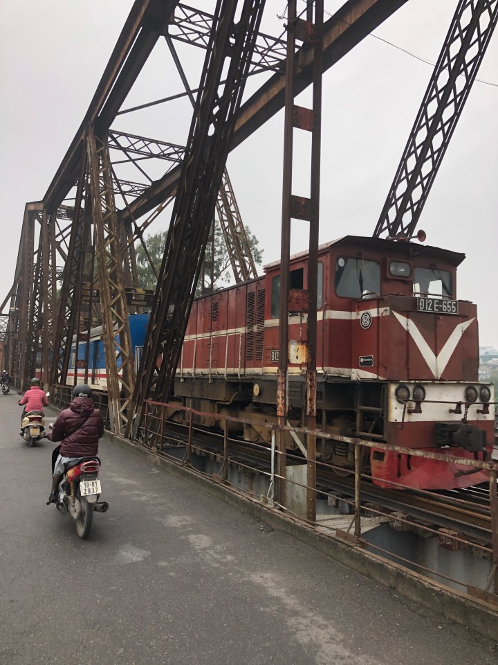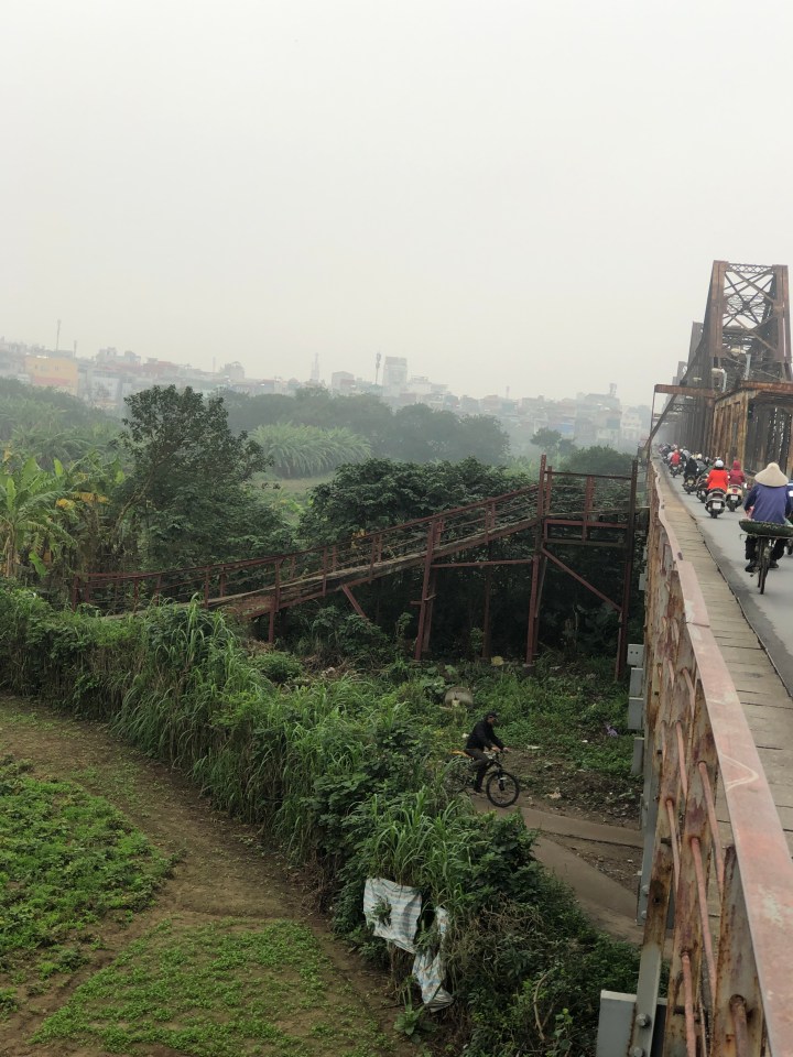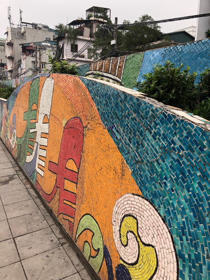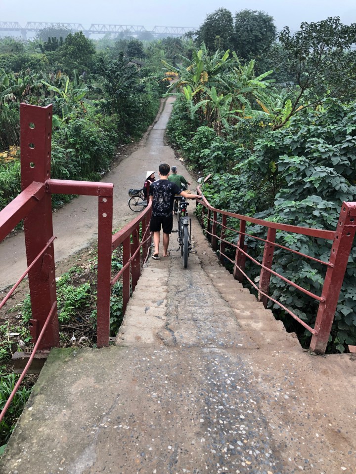 I tried asking the name of the soup, but I was unable to get across what I wanted to know. Back at my hotel, I showed the staff a picture of the soup and told them where I got it and they gave me the name. The particular thick noodles are called banh da. When I looked them up I found out they are a specialty of Hai Phong. The unusual colour is attained from a certain red fruit.