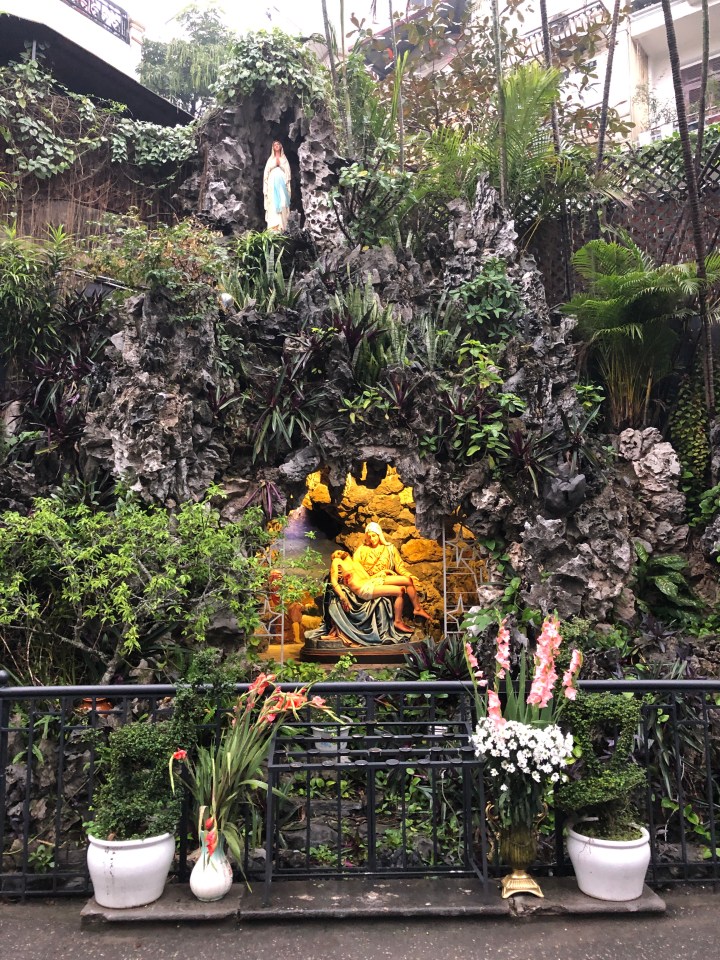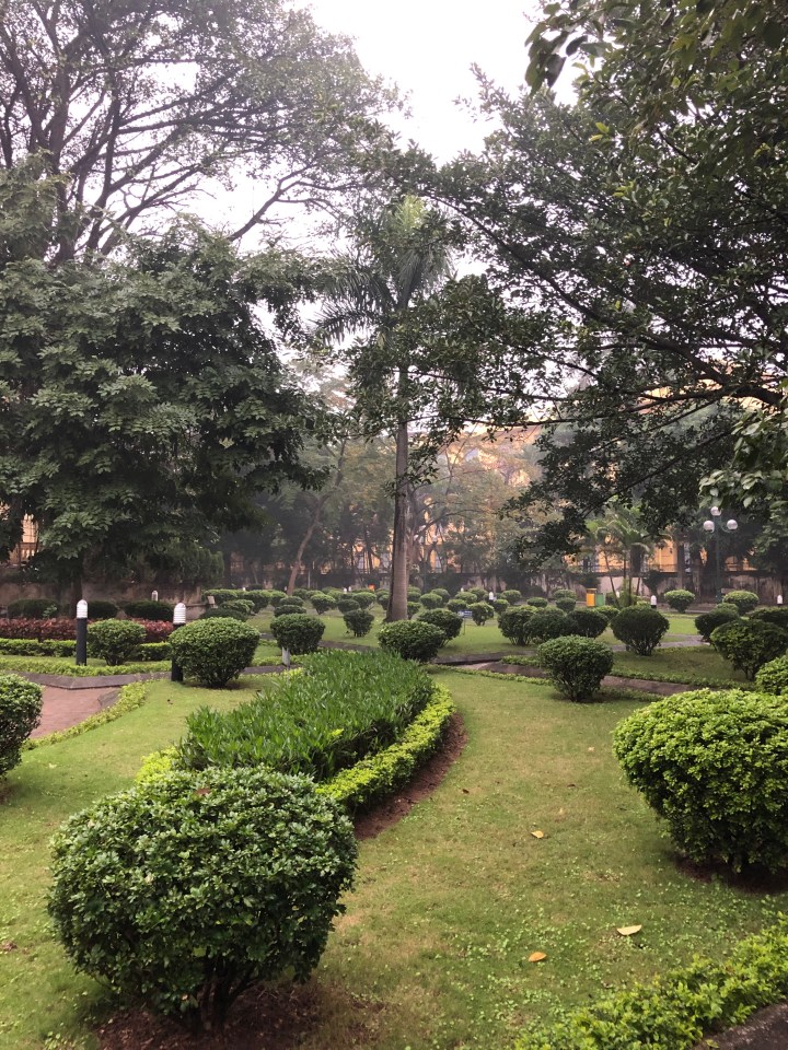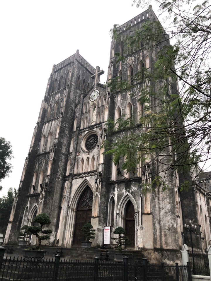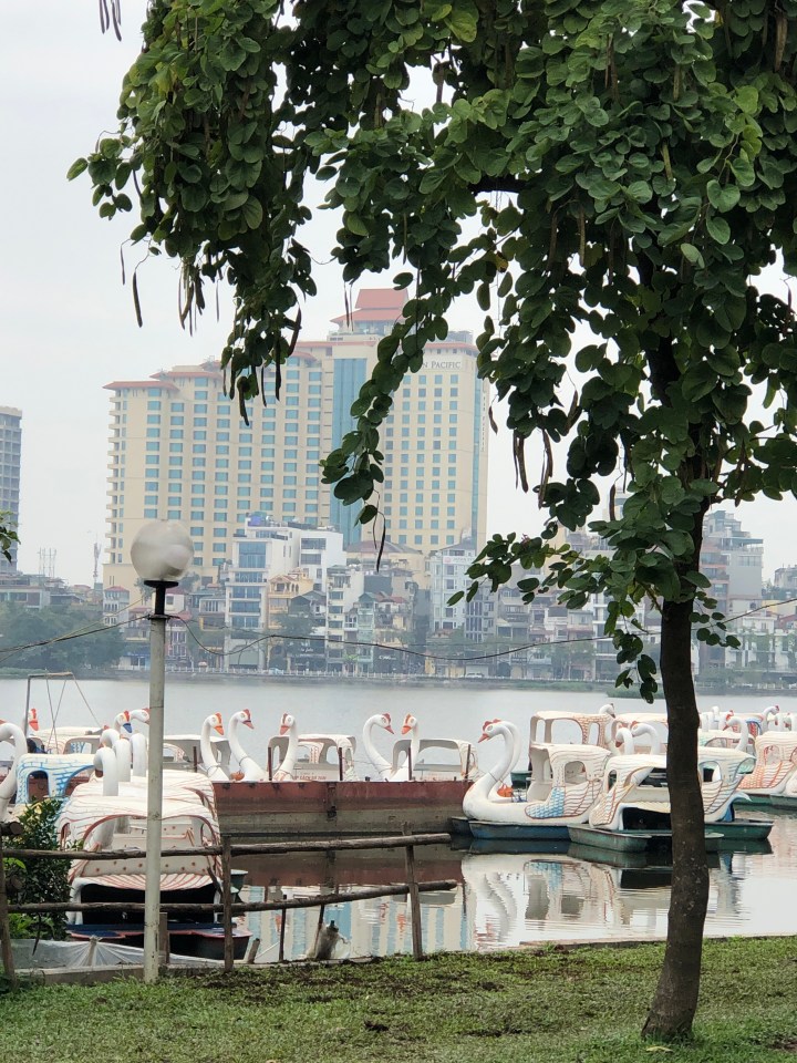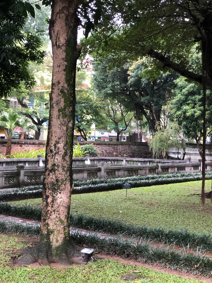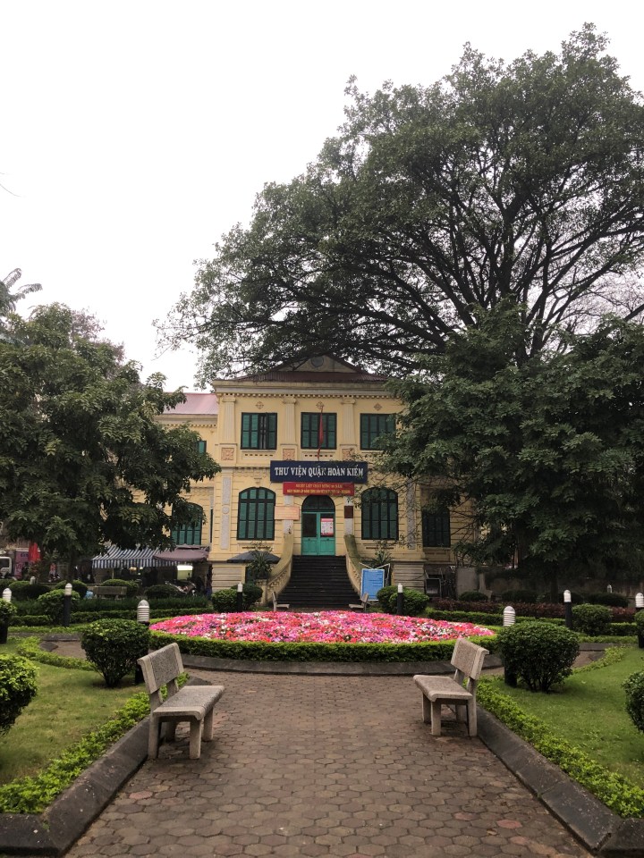 I walked south-east from my hotel, a direction which would take me south of the bottom end of Hoan Kiem lake, into the French Quarter. Here, I found myself on a wide avenue with broad sidewalks, and large buildings, many of which with the yellow walls typical of French Colonial architecture. The sidewalk had enough space that I rarely had to step into the street to find my way around parked motorbikes.