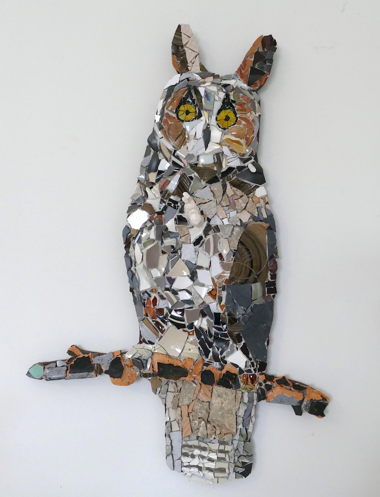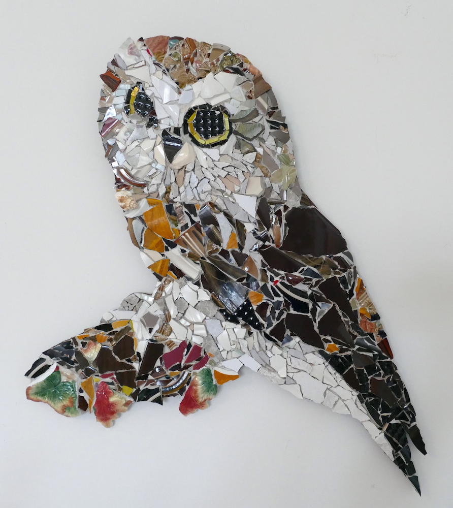Our first woodpecker mosaic – a Northern Flicker. It’s about a metre beak to tail. This piece is a donation for the upcoming Salah Bachir Show in support of St. Joseph’s Health Centre and will be available at the silent auction at that event.