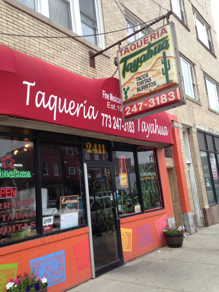 Candy Minx introduced me to a wonderful fruit treat in Pilsen the other day, on my visit to Chicago. This is available at the various street taco stands and carts around their neighbourhood. They insert a sturdy skewer close to the seed of the mango, peel it with a potato peeler and neatly slice into wedges in a plastic tub (what a great way to deal with mango messiness). Then then squeeze lime juice over the slices and sprinkle them with cayenne and salt, creating a fruit treat that is sweet, tart and hot all at once. Fantastic! Sorry I failed to take a photo. Perhaps Candy will snap one next time she buys one of these.