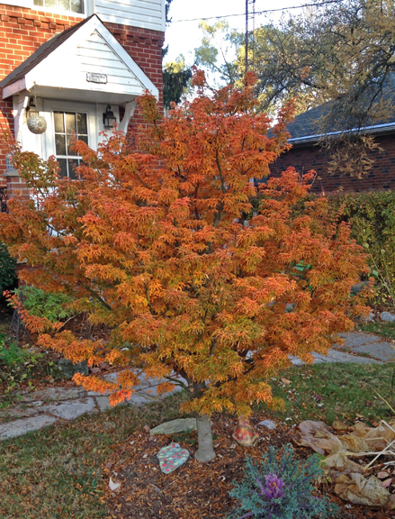 Our Shishigashira, or Lion’s Mane Japanese Maple is one of the last trees to turn colour each year around here. Up until just a few days ago it remained a deep green, Then it changes quickly over just a few days, and hits us with stunning oranges and yellows. It’s a short show though, and when this one changes colour I know winter is around the corner.