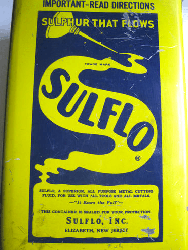 This stuff is manufactured especially for plumbers, steamfitters, electricians and mechanics generally. It even has a guarantee: We guarantee SULFLO to be satisfactory to you. Use our tests or your own, and it will prove better than any other cutting oil. Unless you are satisfied return the can and unused portion of contents to your dealer who will return your money. On the other side, the can promotes other SULFLO products such as boiler water treatment, fuel oil treatment, boiler seal, soldering paste, pipe joint compound oil insoluble, penetrating oil and an all purpose product. This can is going to make a fine canjo, I just know it.