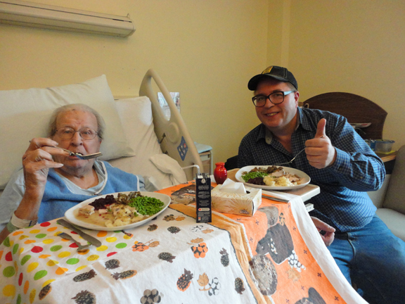 Tuffy P took this shot of me and her dad George enjoying some turkey dinner. I will say he summoned up quite an appetite for the occasion!